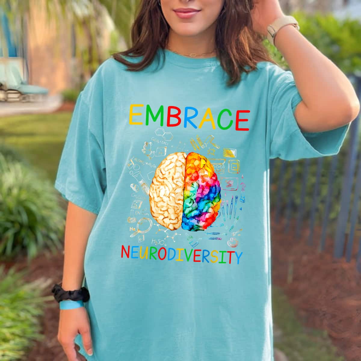 - Neurodiversity Embrace ADHD Autism Awareness Month T-Shirt